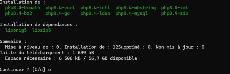 sudo apt install php8.4-{curl,gd,intl,mysql,zip,bcmath,mbstring,xml,bz2,ldap}