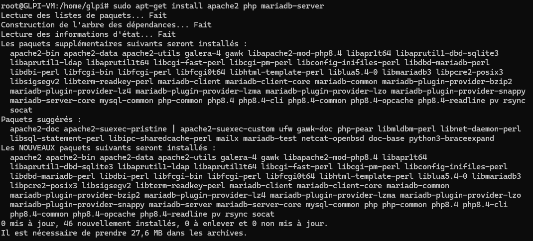 Après on installe les composant pour l’exécution de glpi (pour GLPI ce sont des modules PHP) :