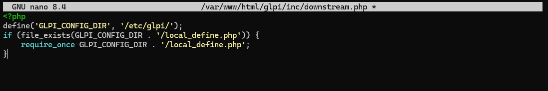 sudo nano /var/www/html/glpi/inc/downstream.php
