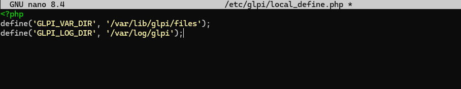 sudo nano /etc/glpi/local_define.php