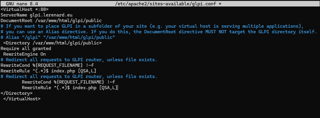 sudo nano /etc/apache2/sites-available/glpi.conf