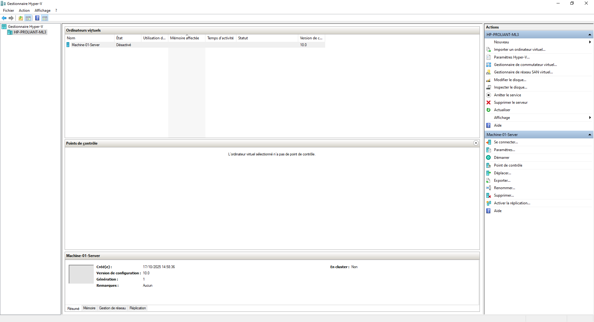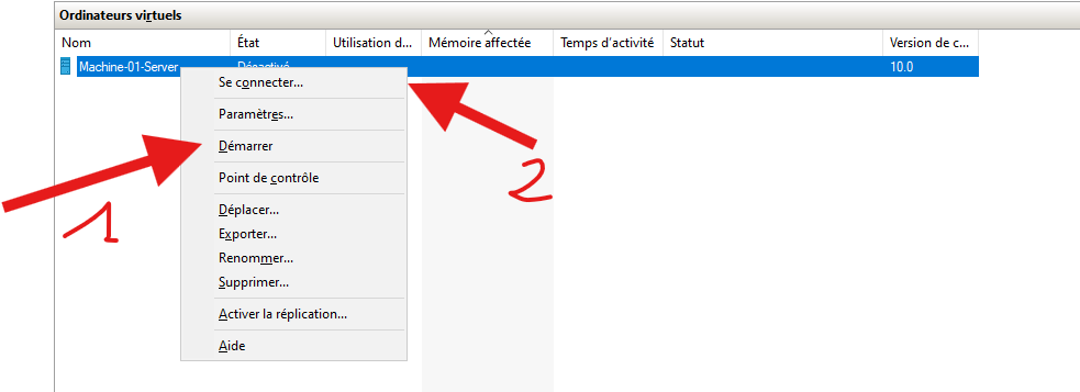 Elle apparait éteinte dans le Gestionnaire Hyper-V :