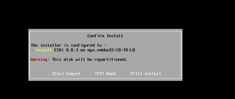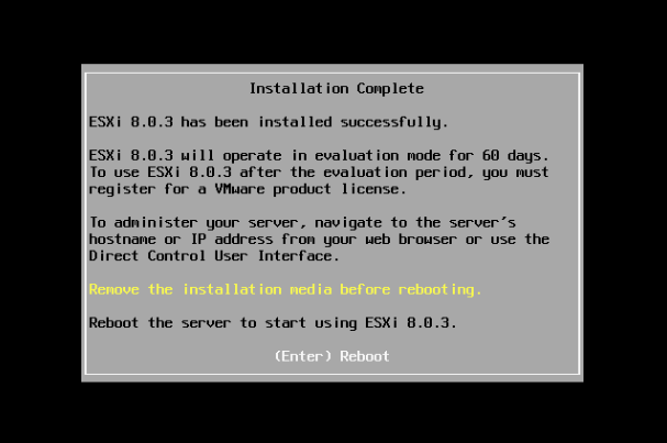 Fin de tuto pour installer VMware ESXi et cela s'applique aussi aux anciennes versions et aux nouvelles