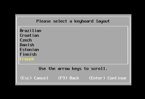 Après cela, on passe à l'option clavier pour ensuite entrer un mot de passe admin, pour mon exemple, ce sera French :