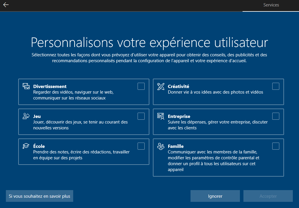 Arrivé ici, vous choisisez "Configuration pour une utilisation personnelle" :