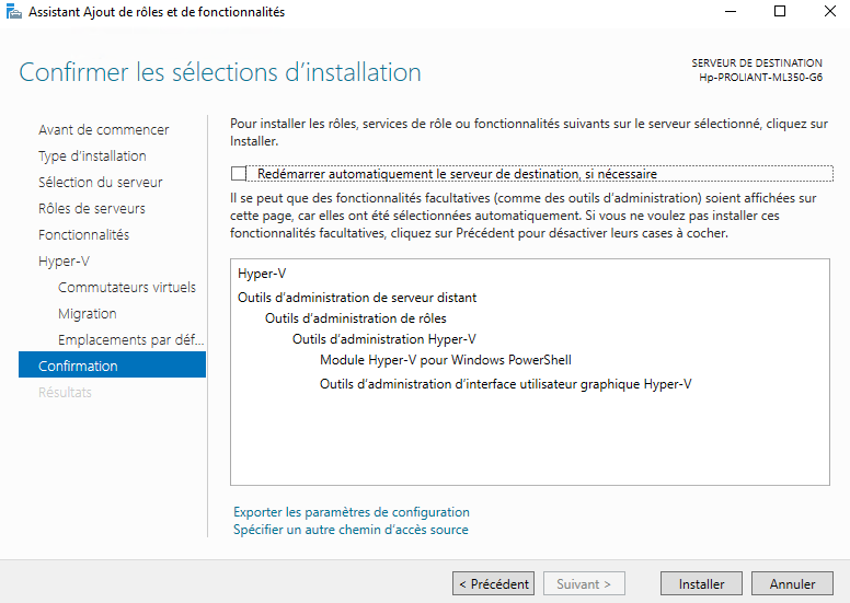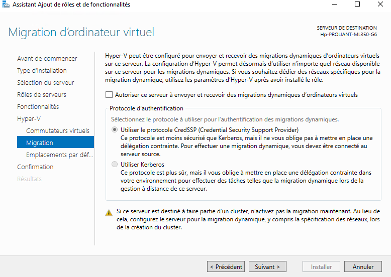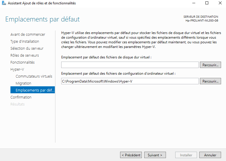 Nous arrivons dans la partie de la configuration de Hyper-V :